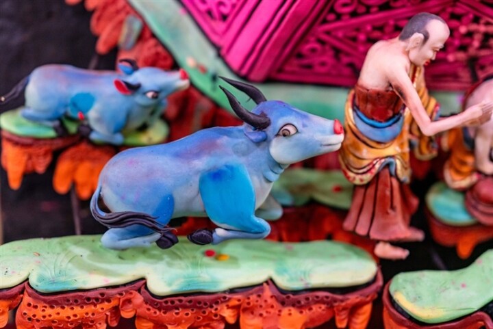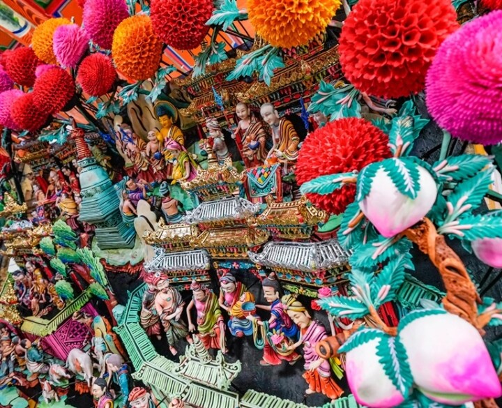 酥油花,雖名為“花”,實則遠不只是花朵。其題材廣泛,涵蓋了佛經傳記、民間故事、歷史人物、歷史典故以及神話傳說等豐富內容,充分傳承了藏傳佛教“精、繁、巧”的工藝特色。藝僧們憑借精湛技藝,捏塑出的佛像人物神態自然、栩栩如生,仿佛賦予了他們靈魂;花卉鳥木生動逼真,每一片花瓣、每一根羽毛都細膩入微;亭臺樓閣則惟妙惟肖,一磚一瓦盡顯精致,再現了古時建筑的典雅風貌;講述的故事情節更是跌宕起伏、委婉動人,引人入勝,極具藝術感染力,讓人沉浸其中,流連忘返。