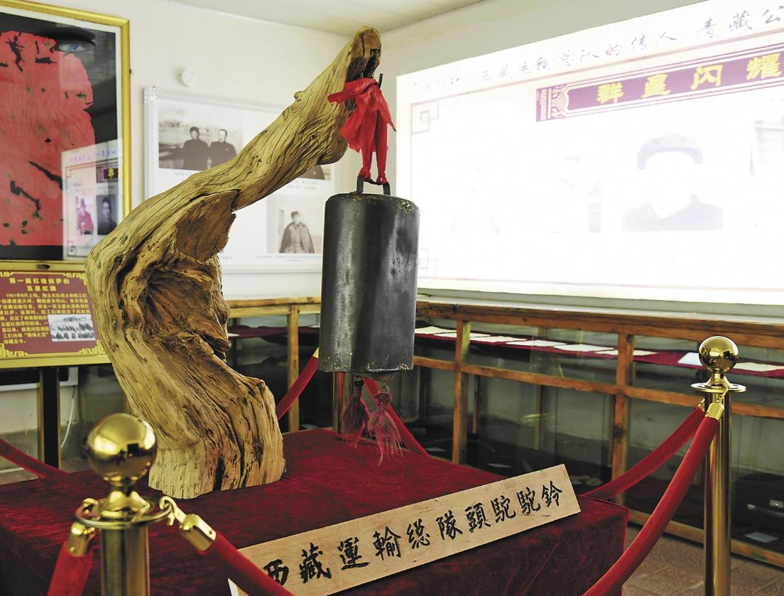 青藏駝隊歷史博物館館長張存虎介紹,館內展出了近200份相關歷史文獻,包括數十件國家級文物,在諸多陳列文物中,一個周身被歲月的銹跡層層包裹的駝鈴,牢牢吸引著人們的目光。“這是頭駝駝鈴,當時很多地方都沒有路,在這種情況下駝鈴便是最好的‘燈塔’,這個駝鈴材質特殊,鈴聲厚重、穿透力強,在山谷間能傳3至5公里。”張存虎說。