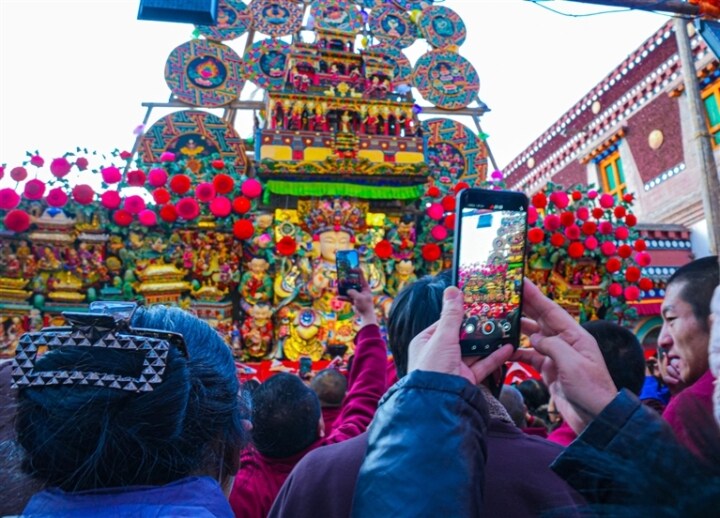 在參觀的人群中,一位攝影愛好者不停地按著快門,試圖將這美好的瞬間永久定格。他一邊拍照,一邊喃喃自語:“太美了,什么角度都好美,這就是非遺的魅力。”幾位外地游客則認真聽著同行人員關于酥油花的介紹,生怕錯過任何一個知識點。