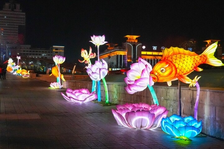 城中區(qū)的中心廣場、城隍廟等地,花燈造型獨特,將古老與現(xiàn)代元素完美融合。一位正在拍照的游客吳女士興奮地表示:“第一次來西寧過元宵節(jié),感受到了濃濃的民俗體驗,社火和花燈太讓我驚艷了!傳統(tǒng)與現(xiàn)代的結(jié)合,讓我看到了這座城市獨特的魅力。”
