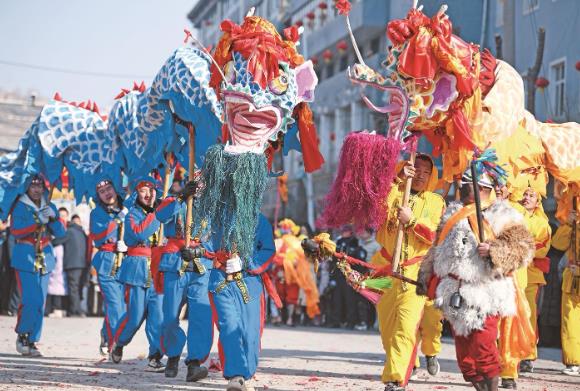 今年正月初四起,青海各地的社火便熱鬧登場,龍獅騰躍,秧歌歡快,錢棍飛舞,高蹺驚險,高臺精彩……報兒、燈官老爺、啞巴、胖婆娘、八仙等傳統角色輪番登場。在鑼鼓喧天的熱鬧氛圍中,將新春的祝福送到千家萬戶。