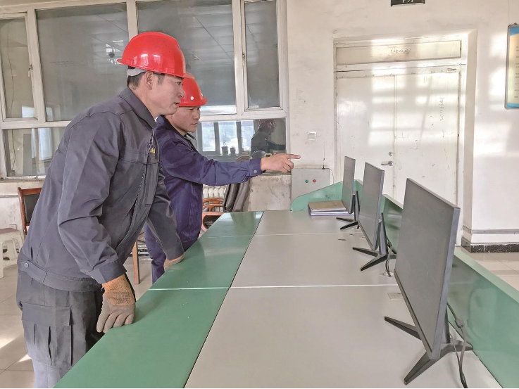 供熱站工作人員查看供熱系統數據。