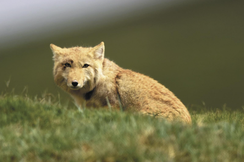 草叢中休憩的藏狐