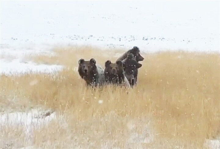 棕熊是三江源地區(qū)重要的野生動物之一,屬于國家二級保護動物。在青海三江源地區(qū),棕熊通常會在冬季進入冬眠狀態(tài),以應(yīng)對寒冷的氣候和食物短缺。然而,近年來由于氣候變化,冬眠時間有所縮短,部分棕熊甚至?xí)诙咎崆疤K醒。此次拍攝到的棕熊一家,很可能是剛剛結(jié)束冬眠,正在尋找食物以補充能量。