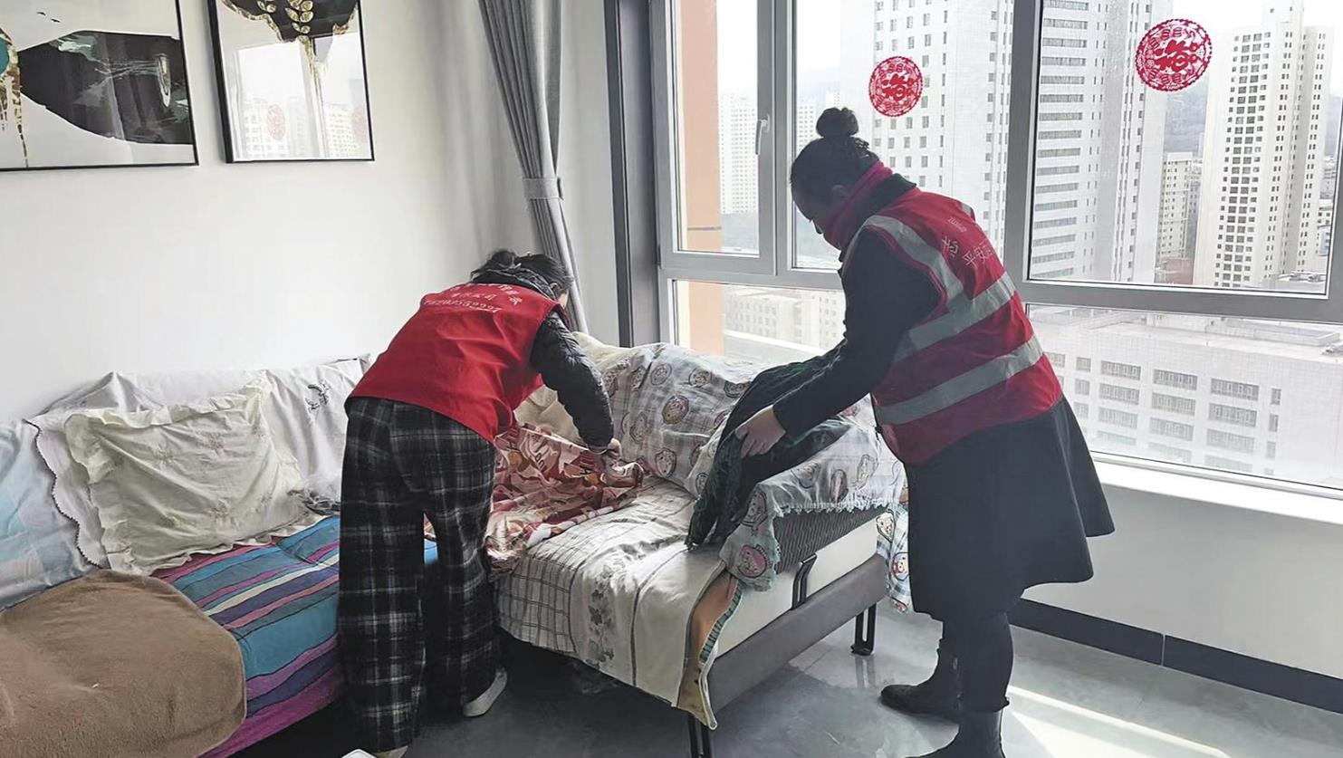 家政服務人員提供上門收納服務。圖片由省商務廳、互助縣就業局提供