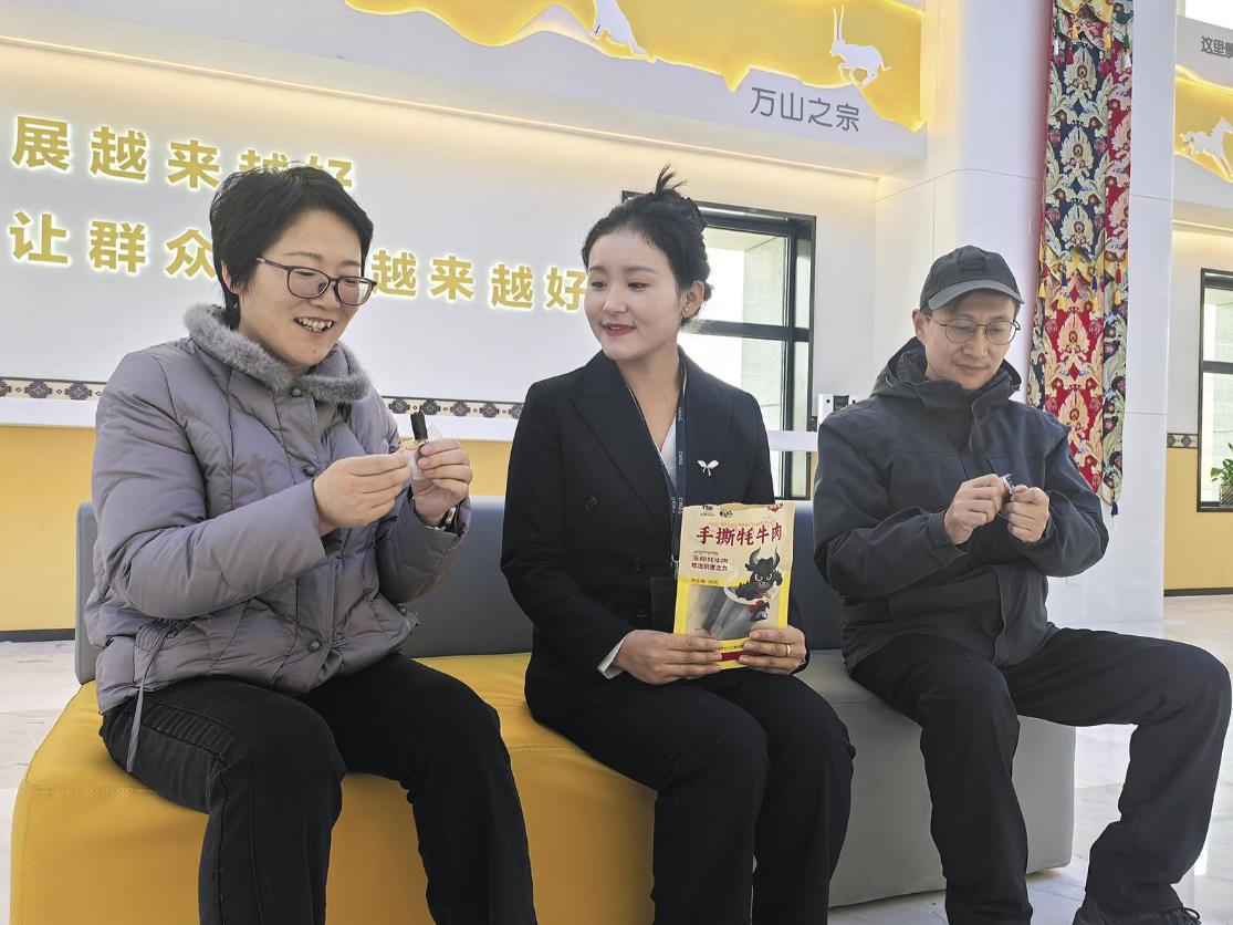 為了讓玉樹特色產(chǎn)品走進(jìn)更多家庭,周振霞除了對(duì)接北京各大網(wǎng)購(gòu)平臺(tái),參與各類推介、品鑒和展銷活動(dòng)為企業(yè)“站臺(tái)吆喝”,還自掏腰包當(dāng)起消費(fèi)者。2024年春節(jié)前,周振霞購(gòu)買200公斤玉樹牦牛肉和100多包黑青稞掛面郵寄回北京,分給家人和朋友,“作為玉樹人,東西好不好我是了解的。所以,放假的時(shí)候,給親戚朋友帶些玉樹特產(chǎn)回去,讓他們嘗嘗,多一個(gè)人的認(rèn)可,我們的好產(chǎn)品也會(huì)多一份銷路。去年帶過(guò)一次后,我身邊的回頭客還不少呢!”周振霞笑著說(shuō)。