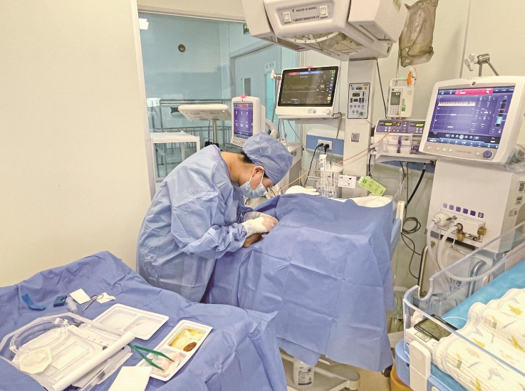 重癥監護室瞬間進入戰備狀態,新生兒科主任姚彥莉立即啟動“黃金十分鐘”應急機制,暖箱提前預熱至36.5℃,呼吸機管路完成氣密性檢測,急救藥品開盒待用,規范化的物資準備流程,讓“掌心寶寶”在娩出的瞬間就無縫銜接進行搶救。