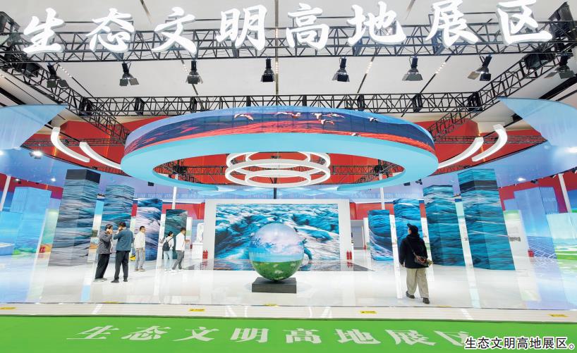 6月23日,記者走進青海國際會展中心前廳,首先映入眼簾的是一片充滿生態韻味的展示空間。這里作為本屆青洽會的“生態名片”,設置生態文明高地展區,展區整體設計以“青海藍、生態綠”為主色調,通過精心設計的展陳方式,向觀眾講述青海的綠色發展故事。