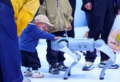 在上海市展區(qū),一只造型仿生的機(jī)器狗更是成為了市民駐足的焦點(diǎn),只見它顏值極高,大大的腦袋、長長的耳朵,還穿著衣服打著領(lǐng)帶,與其他生硬的機(jī)器狗相比更容易讓人們接受。它溫順可愛,不停地向著市民搖著尾巴,十分乖巧。“我們這款仿生機(jī)器狗已經(jīng)量產(chǎn)了,在京東等購物平臺都有銷售,它不僅可以陪護(hù)還能遠(yuǎn)程監(jiān)控,對很多討厭寵物狗掉毛、對毛過敏又想養(yǎng)寵物狗的人士十分友好。”上海弈沐機(jī)器人科技有限公司負(fù)責(zé)人向記者介紹說。