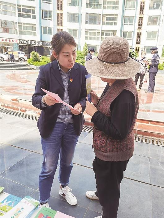 馬蘭在小區里給居民宣傳政策。