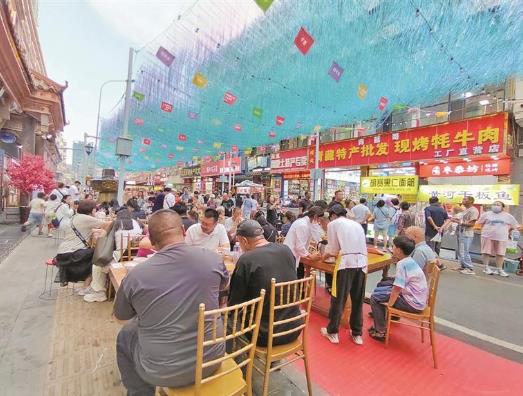 “今年開始,我們這里允許店鋪外擺了。外面一熱鬧,就會有其他人被帶進店里,感覺今年街道上的氣氛不一樣了。”在馬義看來,店門口擺放的12張桌子,是帶動店里生意的關鍵之一。