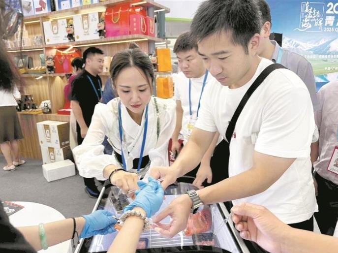 從現(xiàn)烤的羊肉串到發(fā)酵的青稞酩餾酒,從有機(jī)藜麥餅干到沙棘果汁,青海館的美食區(qū)如同一場(chǎng)流動(dòng)的高原盛宴,讓嶺南味蕾與雪域風(fēng)味完成了一次奇妙碰撞。當(dāng)味覺(jué)的盛宴漸入佳境,展館的另一端,商機(jī)正隨著交流的升溫悄然涌動(dòng)。