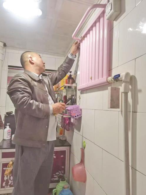 在小區4號樓,物業工作人員走進徐文福老人家的客廳,從包里拿出儀器,在客廳距離窗戶約1.5米、離地約1.2米處測了3分鐘。“24℃,客廳溫度達標。”物業工作人員說。