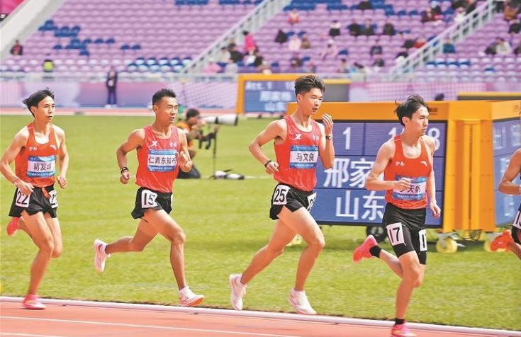 比賽還剩六圈時進入白熱化,青海隊馬文良、云南隊蔣發坤、遼寧隊于水慶、山東隊唐浩然展開獎牌爭奪戰。此時,全場觀眾的熱情進一步被點燃,看臺上各隊的助威聲此起彼伏。運動員們盡管體能已經接近極限,但在一聲聲“加油”的感染下,大家都咬緊牙關奮力向前。