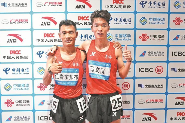 在混采區,馬文良看著隊友仁青東知布激動地說:“我師兄是上屆全運會的馬拉松冠軍,我要向他看齊。今天,我特別感謝他,是他‘犧牲’了自己為我爭取了更多發揮的空間,這塊獎牌的光芒是屬于我們這個團隊的。”聽馬文良這么一說,本就比較靦腆的仁青東知布有點不好意思:“他真的很優秀,下一個四年,我們還要一起努力,一起加油。”采訪結束時,他們自豪地說:“我們的家鄉是青海省海北藏族自治州,我們都是蘇偉教練的學生。”