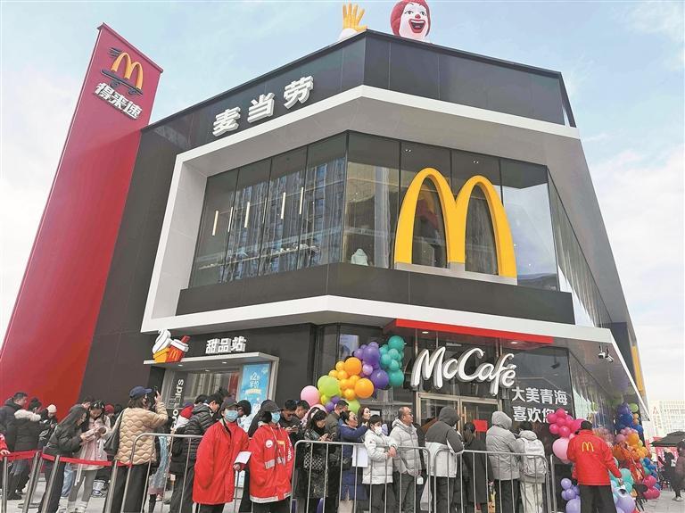 麥當勞青海首店12月21日開業,眾多消費者排隊等候進店體驗,現場洋溢著熱鬧的消費氛圍。