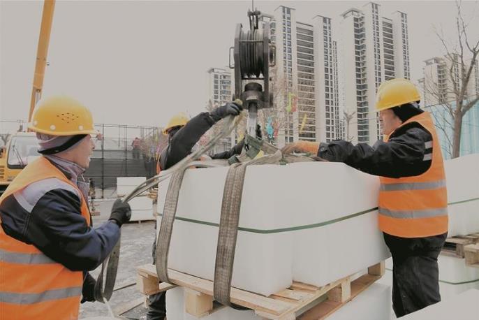 吊運(yùn)冰磚。